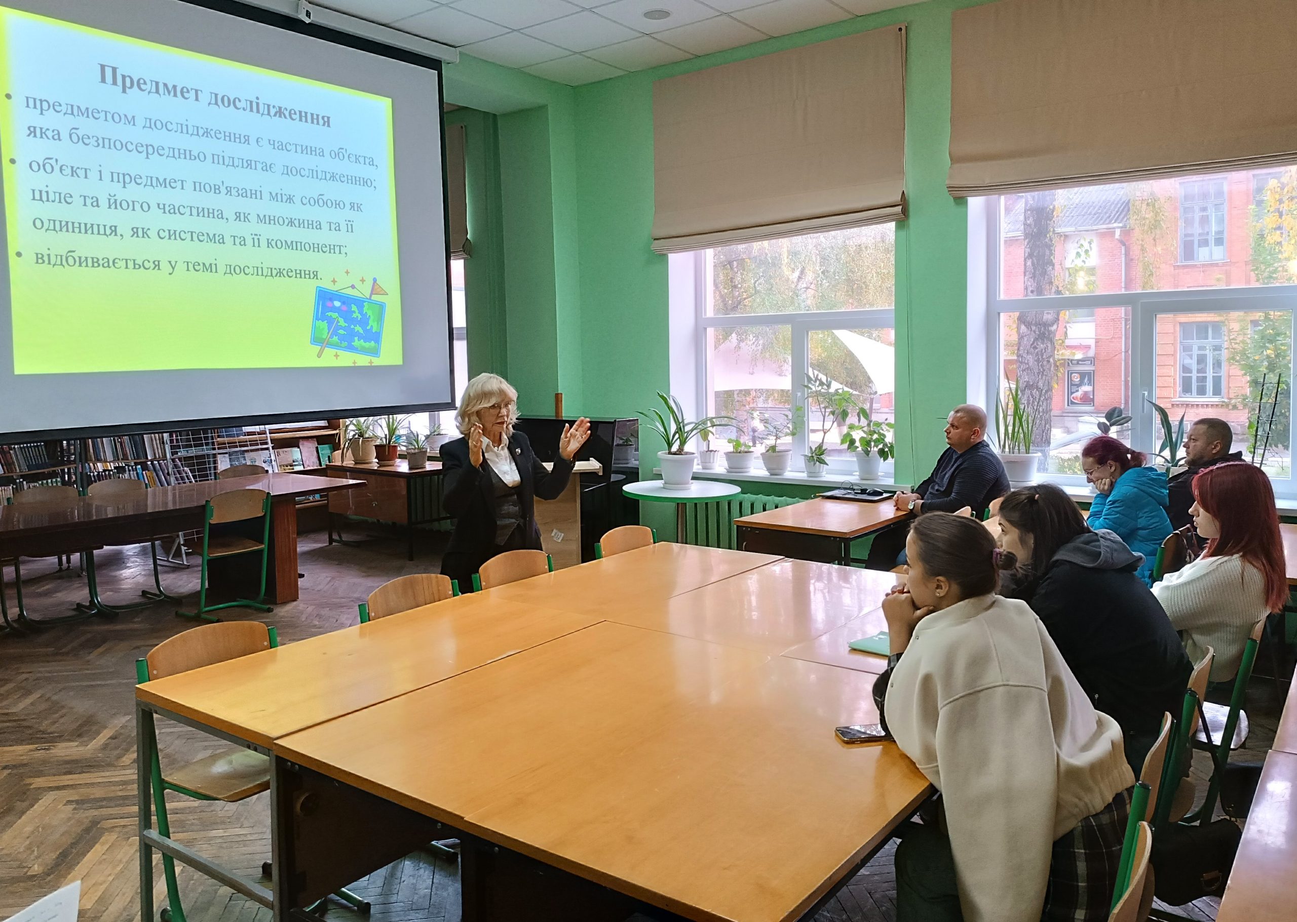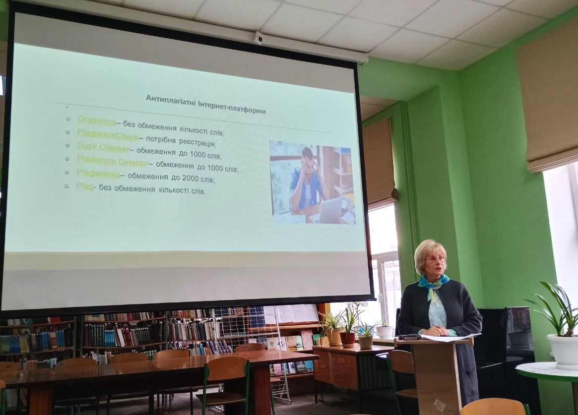 Директор бібліотеки імені М.А. Жовтобрюха Валентина Орєхова надала присутнім вичерпні консультації щодо ресурсів бібліотеки, доступу до міжнародних наукометричних баз, чинних бібліографічних стандартів.