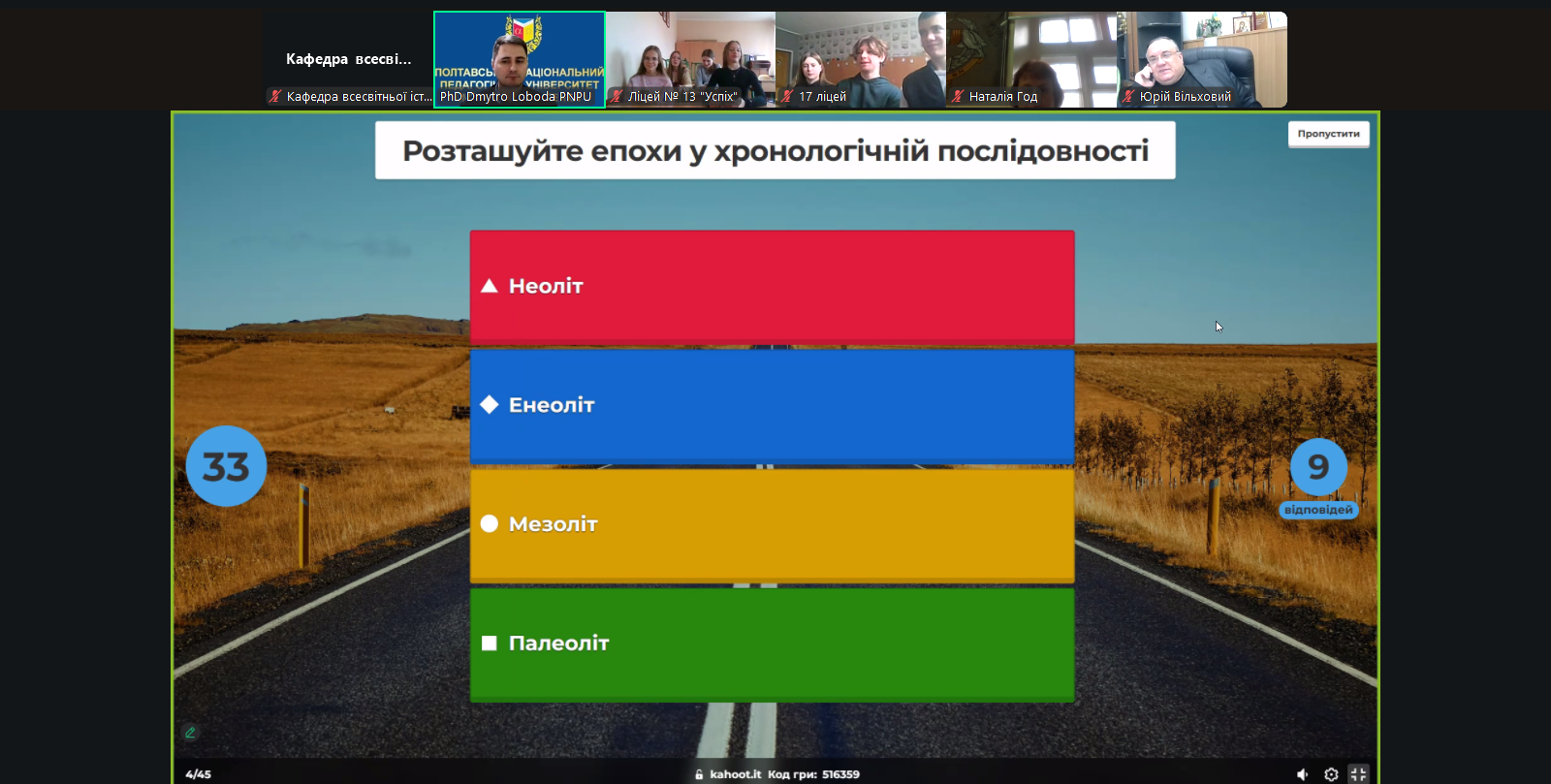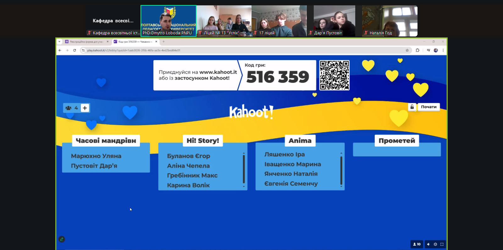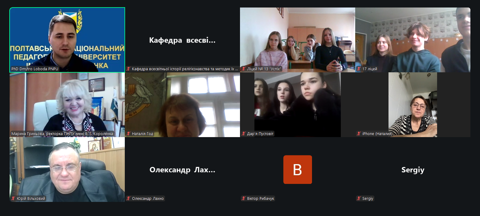 20 листопада 2025 року за ініціативи кафедри всесвітньої історії, релігієзнавства та методик їх викладання в Полтавському національному педагогічному університеті відбувся історичний турнір зі всесвітньої історії для учнів шкіл.