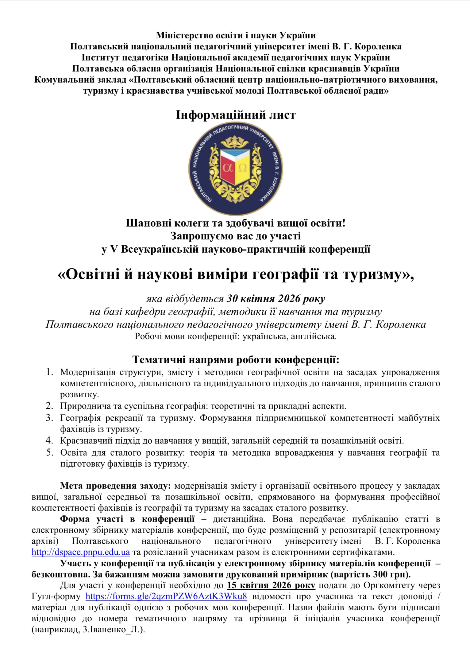 5.03.2026 р. відбувся міжуніверситетський семінар на тему «Сучасні підходи до формування змісту та забезпечення якості освітніх програм підготовки фахівців за спеціальністю J3 Туризм та рекреація».